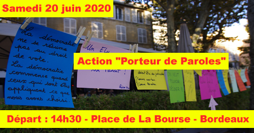 Nous proposons, à différents points stratégiques dans Bordeaux sur des panneaux, de recueillir les paroles du peuple, les souhaits, les colères, les attentes pour construire le monde d'après et cette sortie de crise sanitaire, économique et sociale.