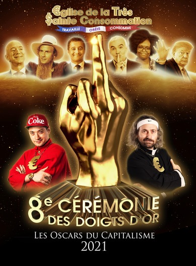 La 8e Cérémonie des Doigts d'Or - Les Oscars du Capitalisme 2021 consiste en une rétrospective des séquences cultes de l'année écoulée, entremêlée de discours décomplexés prouvant que tout va pour le mieux dans le meilleur des mondes... surtout pour nous, les plus riches de la planète !