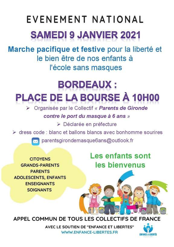 Organisée par le Collectif « Parents de Gironde contre le port du masque à 6 ans sur un appel commun de tous les collectifs de France.