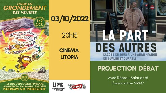 Rejoignez nous le lundi 3 octobre à 20h15 dans une des salles du cinéma Utopia, pour un documentaire et un débat sur le système alimentaire.