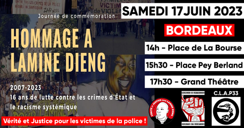 🤝 Comme chaque année depuis 2009, le collectif Contre Les Abus Policiers, le collectif Contre Les Abus Policiers - Clap33 s'associe à la famille de 𝗟𝗮𝗺𝗶𝗻𝗲 𝗗𝗶𝗲𝗻𝗴, 𝗺𝗼𝗿𝘁 𝗲́𝘁𝗼𝘂𝗳𝗳𝗲́ 𝗱𝗮𝗻𝘀 𝘂𝗻 𝗳𝗼𝘂𝗿𝗴𝗼𝗻 𝗱𝗲 𝗽𝗼𝗹𝗶𝗰𝗲 𝗹𝗲 𝟭𝟳 𝗷𝘂𝗶𝗻 𝟮𝟬𝟬𝟳.