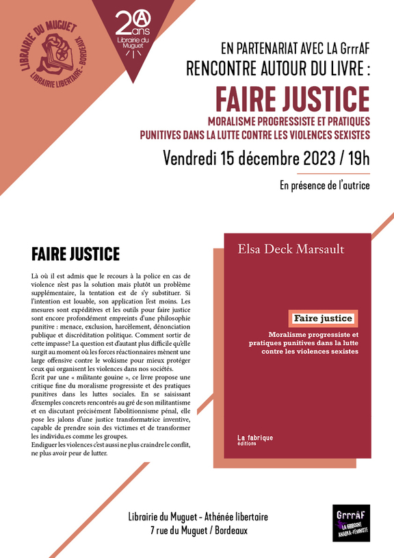 Rencontre autour du livre « Faire justice - Moralisme progressiste et pratiques punitives dans la lutte contre les violences sexistes"