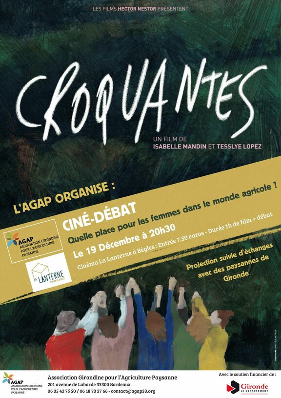 L'AGAP organise un ciné-débat le mardi 19 décembre à 20h30 au cinéma La Lanterne de Bègles ! Vous pourrez assister à la projection du film documentaire "Les Croquantes"
