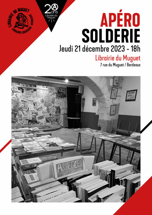 Jeudi 21 décembre à la librairie, venez nombreux-ses à notre apéro - solderie annuelle.