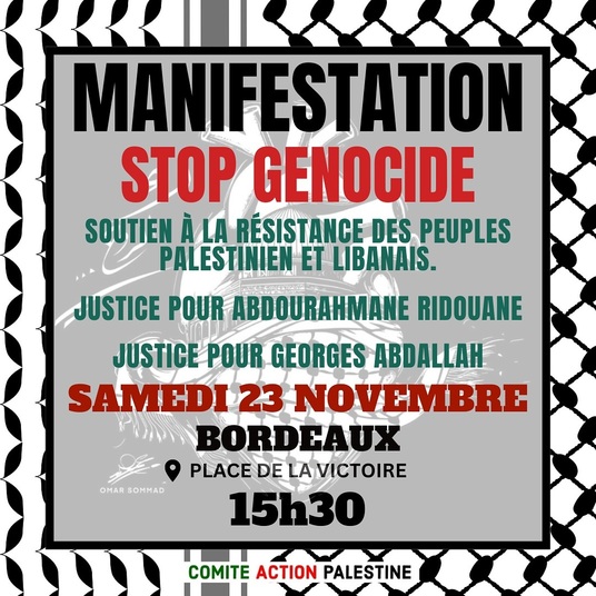 Soutien à la résistance des peuples libanais et palestiniens ainsi qu'à notre camarade Abdourahmane Ridouane !