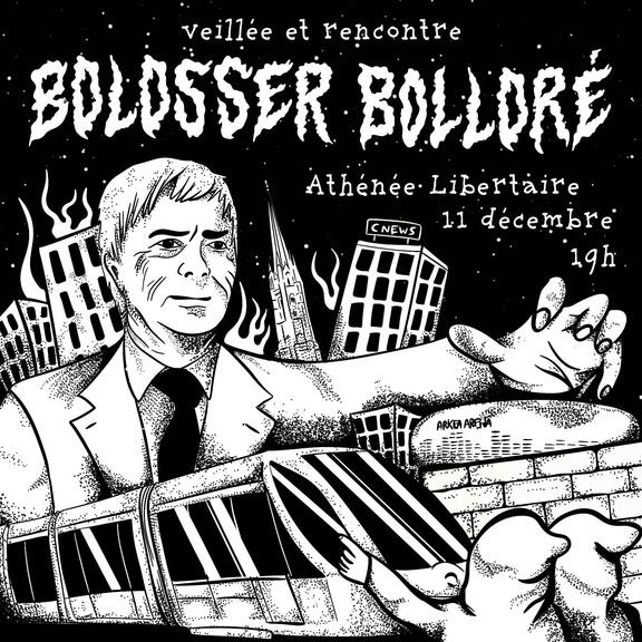 Dans le cadre de la campagne Désarmer Bolloré lancée cet été au lendemain des législatives, une veillée-rencontre s'organise le 11 décembre, 19h, à l'Athénée Libertaire pour comprendre l'empire Bolloré.