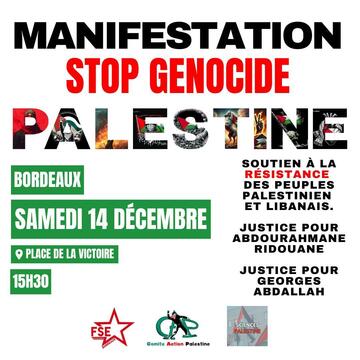 60ème manifestation de soutien au peuple palestinien. Quatorze mois de massacres ininterrompus à Gaza, et depuis 2 mois, l'entité sioniste bombarde aussi le Liban.