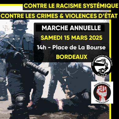 ▪️ 𝗡𝗼𝘂𝘀 𝘃𝗼𝘂𝘀 𝗮𝗽𝗽𝗲𝗹𝗼𝗻𝘀 𝗮̀ 𝗻𝗼𝘂𝘀 𝗿𝗲𝗷𝗼𝗶𝗻𝗱𝗿𝗲 𝗻𝗼𝗺𝗯𝗿𝗲𝘂𝘅, 𝗻𝗼𝗺𝗯𝗿𝗲𝘂𝘀𝗲 𝗰𝗲 𝘀𝗮𝗺𝗲𝗱𝗶 𝟭𝟱 𝗺𝗮𝗿𝘀 𝟮𝟬𝟮𝟰, 𝗮̀ 𝟭𝟰𝗵, 𝗽𝗹𝗮𝗰𝗲 𝗱𝗲 𝗟𝗮 𝗕𝗼𝘂𝗿𝘀𝗲 𝗮̀ 𝗕𝗼𝗿𝗱𝗲𝗮𝘂𝘅 pour dire non aux crimes et aux violences d'État, non au racisme systémique, oui à la solidarité, oui au partage, oui au respect de nos particularités, oui à la préservation de nos droits et de nos biens communs !