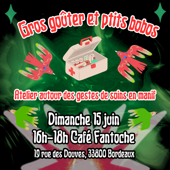 Cet atelier a pour objectif de diffuser des pratiques de soin de base, pour faciliter l'organisation du soin au sein de ton groupe habituel d'action ! Ce n'est pas une formation medic : seuls des actes médicaux très légers seront abordés.