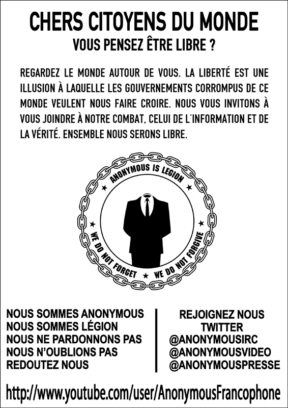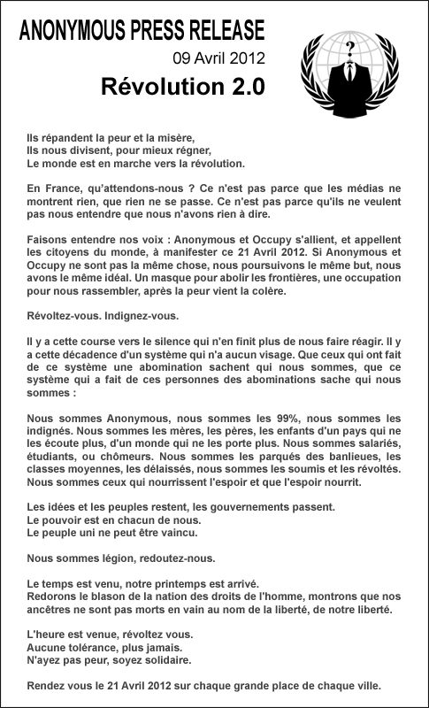 L'appel en vidéo : http://www.rezocitoyen.fr/anonymous-revolution-2-0.html