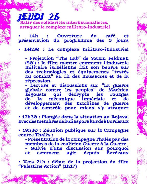 Bordeaux Se Soulève au Fantoche : Bâtir des solidarités internationalistes, attaquer le complexe militaro-industriel (14h - 22h30)