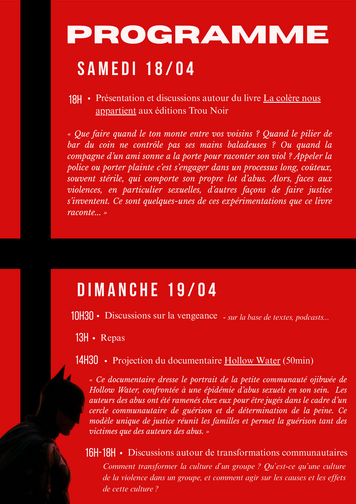 Samedi 18 et Dimanche 19 avril, rdv au Café Fantoche pour un week-end de réflexions sur les formes de justices féministes communautaires et extra-pénales