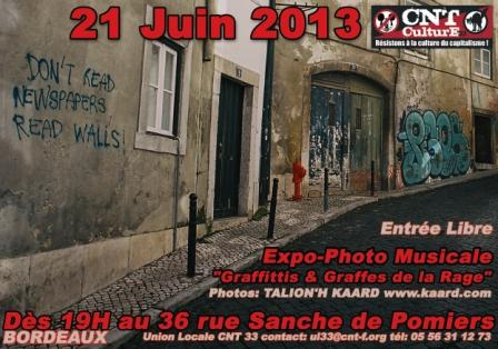 Expo photos "Graffittis et graffes de la rage", en musique, en soutien à la l'union locale CNT.