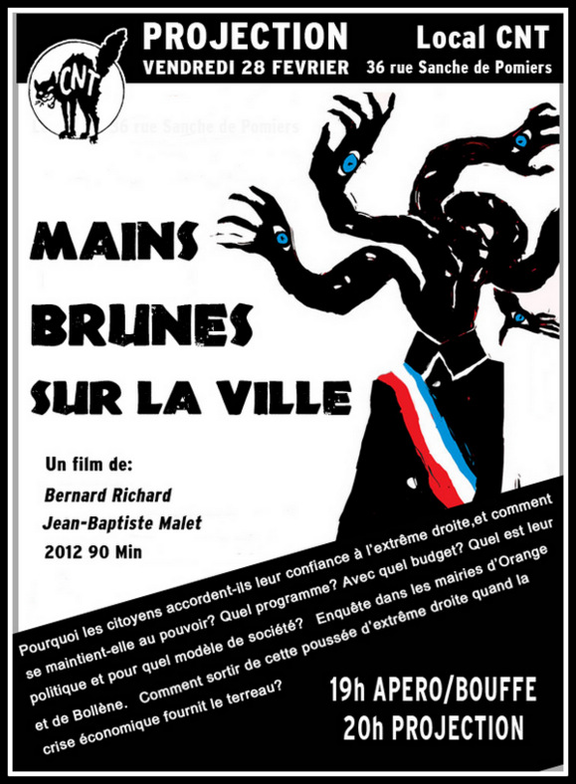 En France, le Front National et d'autres partis d'extrême droite atteignent localement, ici et là, plus de 40 % des suffrages au premier tour des élections, et parfois la majorité au second. Ils ont toutes les chances de réussir dans un avenir proche, à plus grande échelle, une percée sans précédent. A Orange et Bollène, dans la circonscription du ministre Thierry Mariani (Droite Populaire), Jacques et Marie-Claude Bompard (FN puis Ligue du Sud) sont élus depuis de nombreuses années maires et conseillers généraux. Ils appliquent leur programme...
