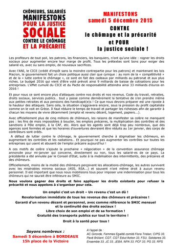 Il est donc plus qu'important pour les chômeurs, les précaires et les plus démunis de se mobiliser le :