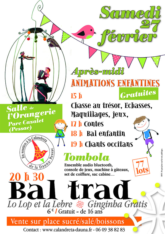 Pour l'occasion, nous ferons une après-midi gratuite pour les enfants puis un bal trad payant (mais pas cher!) avec Lo Lop e la Lebre et Ginginha Gratis.