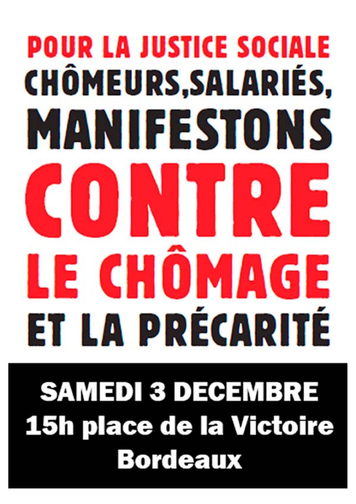 A l'appel d'AC Gironde, APEIS, MNCP, ATTAC 33, Coordination Jeunes Bordeaux, DAL 33, Solidaires Gironde, .......