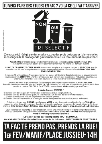 (Ce tract a été rédigé par des étudiant.e.s et des profs de fac pour t'alerter sur les mensonges de la propagande gouvernementale sur ton «orientation» post-bac)