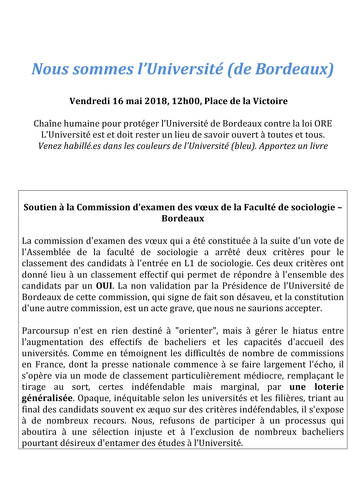 Soutien à la Commission d'examen des vœux de la Faculté de sociologie - Bordeaux