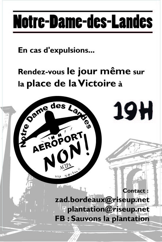 En cas de nouvelles expulsions sur la ZAD, appel à mobilisation sur Bordeaux.
