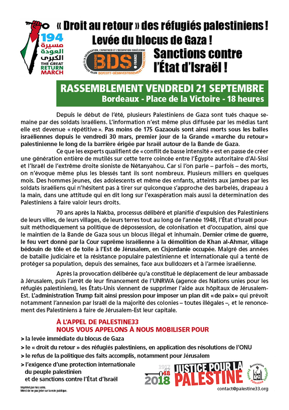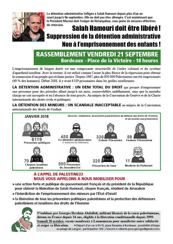 Droit au retour des réfugiés palestiniens - Libération de Salah Hamouri