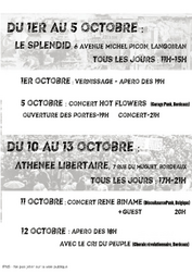 - 5 octobre : concert HOT FLOWERS (GaragePunk, Bordeaux). Ouverture des portes à 19h. Concert à 21h