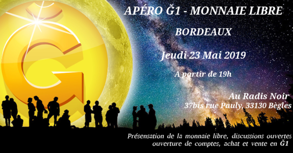 Les utilisateurs de la monnaie libre à Bordeaux vous accueilleront avec toutes vos questions, pour y répondre, le jeudi 23 Mai à partir de 19h pour la première fois au radis noir (37bis Rue Jean Pauly, 33130 Bègles) !